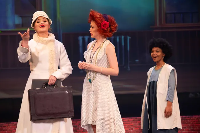 Grace Farrell (Chloe Marot); Miss Hannigan (Grace McIlroy) and Annie (Kaitlyn Rex).
