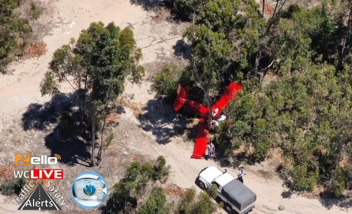 An aerial view of the crash site near Morningstar Airfield, where a Sling 2 aircraft went down shortly after take-off, killing both occupants in Cape Town last month.