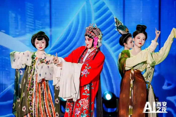 Models present traditional attire recreated using artificial intelligence at a fashion show in Xi'an, northwest China's Shaanxi Province, on the evening of Dec. 18, 2025.