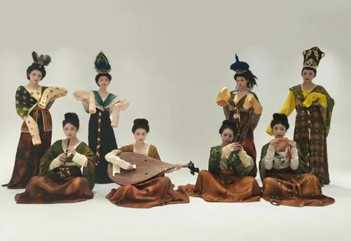An artistic recreation of Tang Dynasty (618-907) court dance costumes.