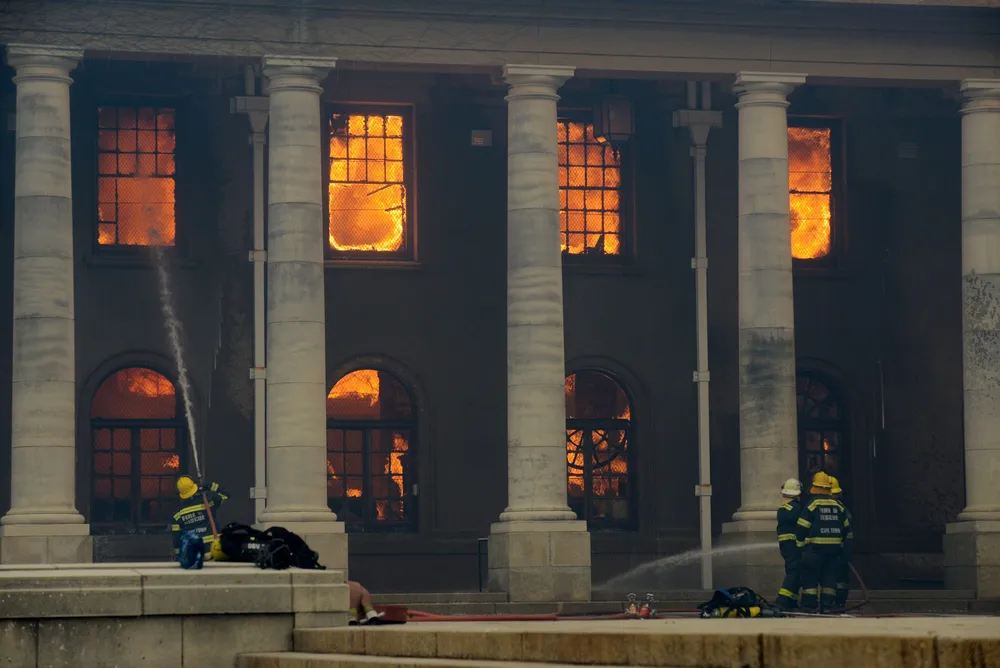 Fire crews were still trying to put down the fire spreading from Rhodes Memorial towards @UCT_news@TheCapeArgus @IOL @CityofCT pic.twitter.com/WXlQnhjQv9