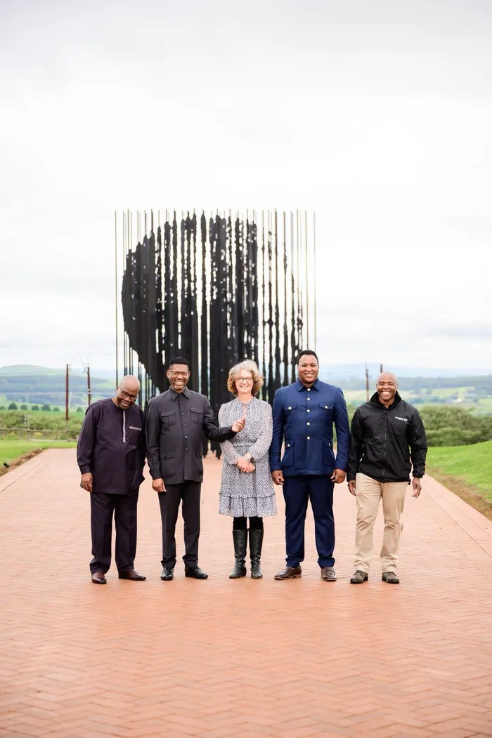 KZN Tourism & Film Authority Board Chairperson Dr Sibusiso Ndebele, EDTEA MEC Rev Musa Zondi, uMngeni Municipality Speaker Janis Holmes, Deputy Mayor of uMngeni Municipality Cllr Sandile Mnikathi and interim CEO Sibusiso Gumbi during an oversight visit to the Nelson Mandela Capture Site, which is currently undergoing a major refurbishment.