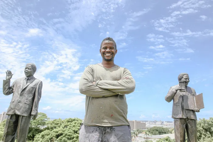 LUNGELO Gumede took a year to complete the sculptures which he unveiled on Tuesday to mark the release of Nelson Mandela from prison. Leon Lestrade African News Agency (ANA) LUNGELO Gumede took a year to complete the sculptures which he unveiled on Tuesday to mark the release of Nelson Mandela from prison. Leon Lestrade African News Agency (ANA)