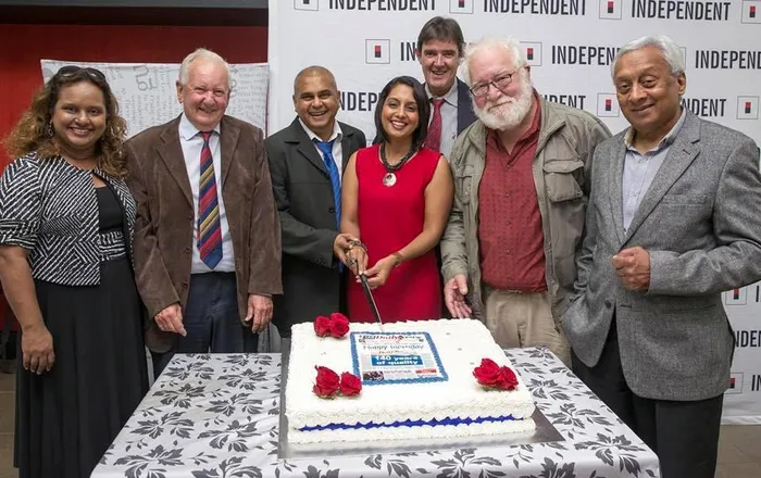 Dennis Pather, extreme right, with former Daily News editors and staff on the occasion of the newspapers 140th anniversary