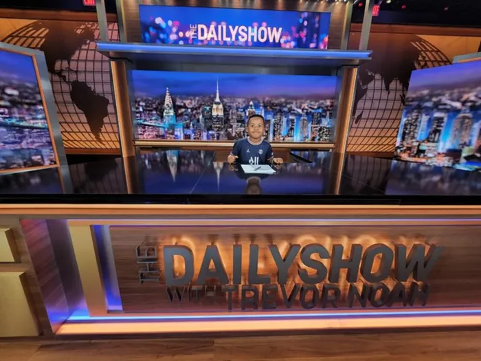 Anele Mdoda's son Alakhe on the set of The Daily Show with Trevor Noah. Picture: Twitter