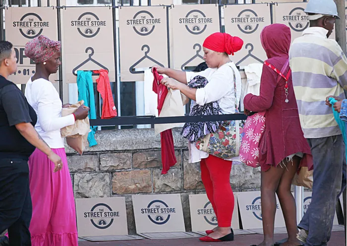 cape town- 140114.The Street Store is a pop-up clothing store which opened up on the pavement of Somerset Road in Green Point this morning. The store provides 3 items of clothing per homeless person free of charge. Reporter: Warren Fortune. Pic:jason boud cape town- 140114.The Street Store is a pop-up clothing store which opened up on the pavement of Somerset Road in Green Point this morning. The store provides 3 items of clothing per homeless person free of charge. Reporter: Warren Fortune. Pic:jason boud