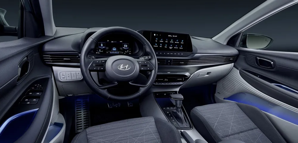 You’ll notice more similarities to the i20 when you view the cabin, with its dual screen digital instrumentation and infotainment set-up.