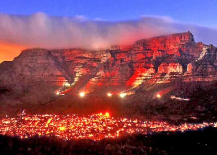 Cape Town-111201-Table Mountain lit up with red lights to mark World Aids Day. Photo:Ross Jansen Cape Town-111201-Table Mountain lit up with red lights to mark World Aids Day. Photo:Ross Jansen