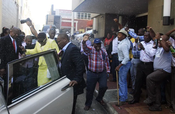 The jubilant scenes came after senior state advocate Wendy O’ Brien withdrew 50 charges relating to fraud, uttering and forgery against Mpisane and her company, Zikhulise Cleaning, Maintenance and Transport.