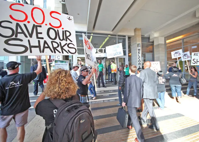 Cape Town - Shark activists protested outside the Mining Indaba at the Cape Town International Convention Centre (CTICC) against Western Australia’s shark culling programme on Wednesday.