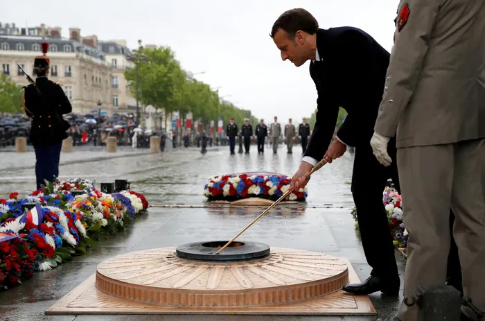 Ceremony to mark the end of World War II at the Arc de Triomphe in Paris. Picture: Christian Hartmann/REUTERS Ceremony to mark the end of World War II at the Arc de Triomphe in Paris. Picture: Christian Hartmann/REUTERS