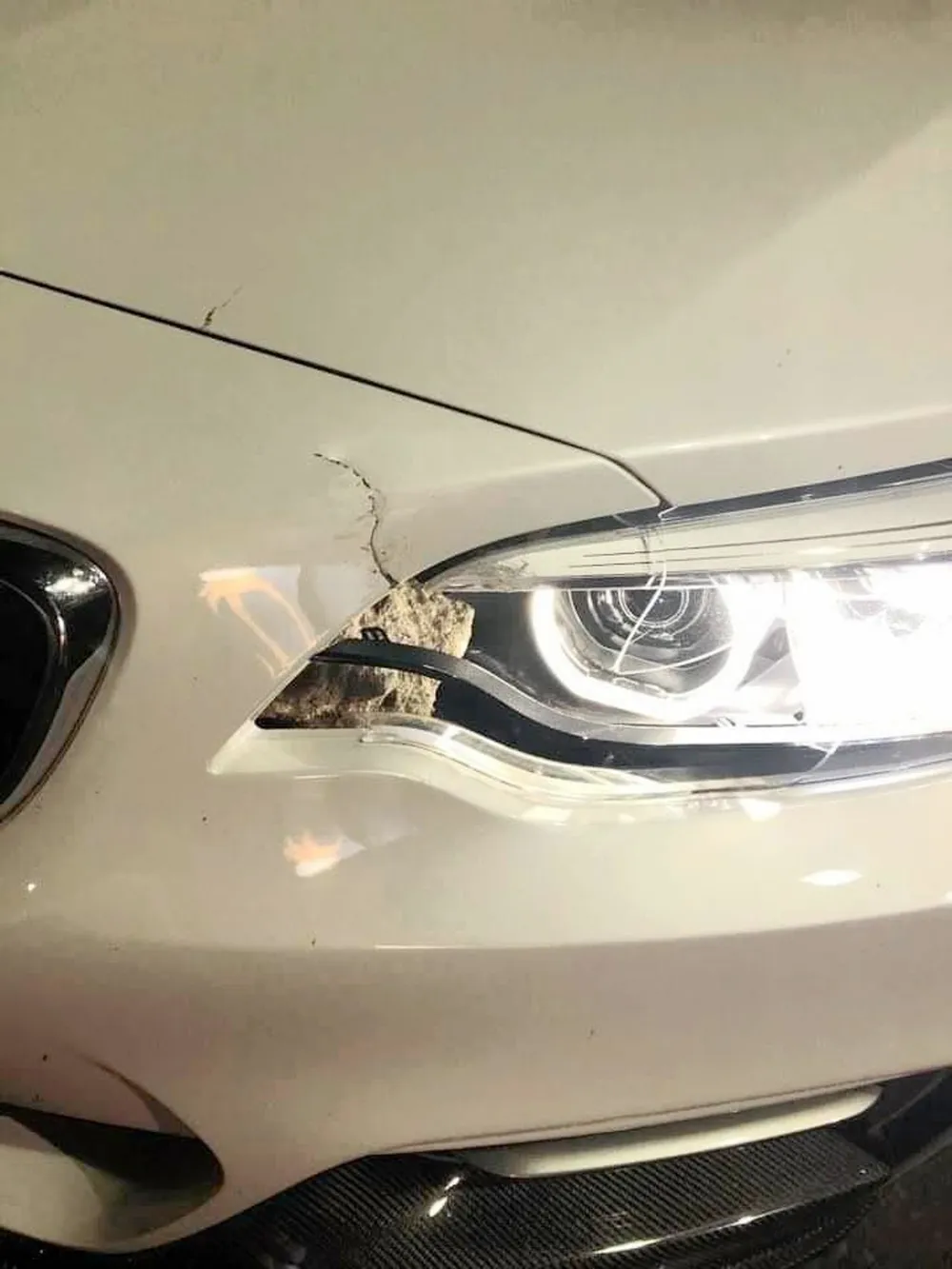 De Villiers said there was a rock in the road and she tried to avoid it, when another rock hit the windscreen.