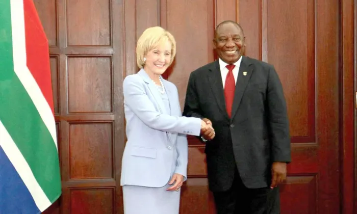 US ambassador to South Africa, Lana Marks, pictured with President Cyril Ramaphosa