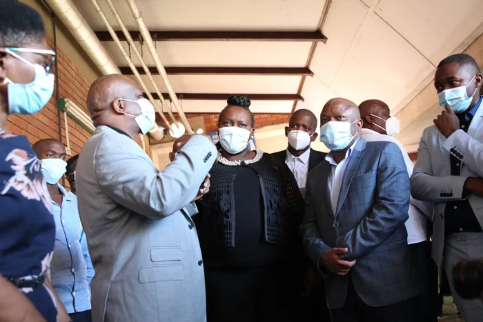 Government had set itself a cautious goal of reaching at least 12 million people for vaccination by December, but at over 10.5 million vaccinations before the end of August they now are likely to surpass the target. Health MEC Nomagugu Simelane Zulu, third left, Premier Sihle Zikalala and other officials at Prince Mshiyeni Memorial Hospital. Picture: Doctor Ngcobo/African News Agency(ANA)