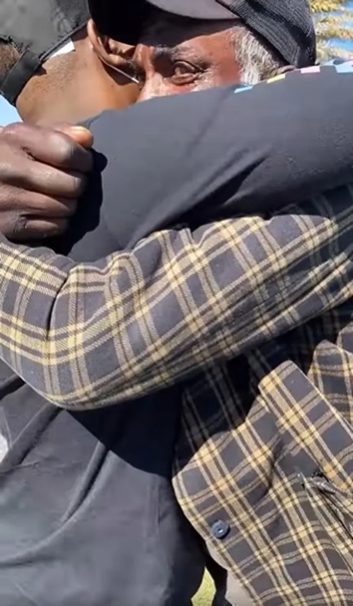 In the video with tears in his eyes he thanked and hugged the men for their generous act of kindness.