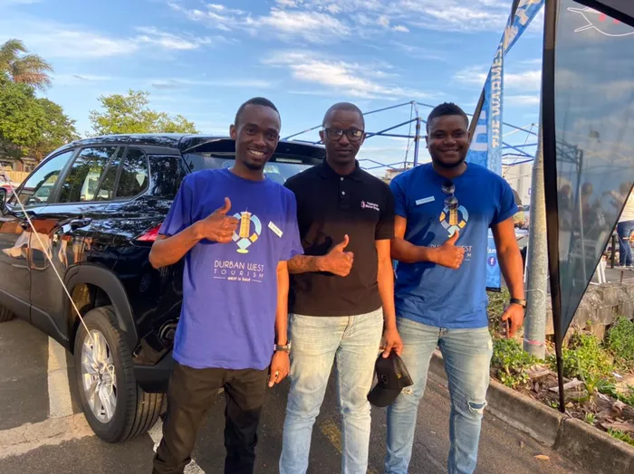 Gcinokuhle Dube of Loxtion Tours, Nkanyiso Mbulu, a sales executive for eThekwini Toyota and Tshukudu Moepadira, chairperson of Durban West Tourism. Picture: SUPPLIED