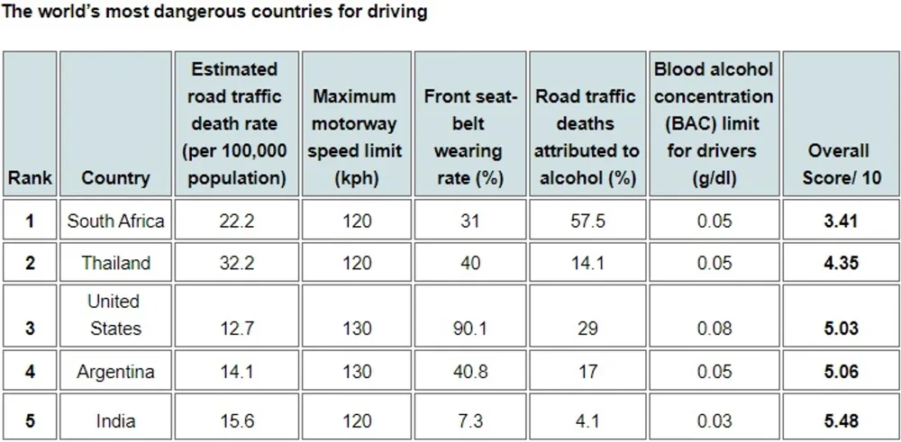 SA was revealed as the most dangerous country to drive in based on the combination of factors.