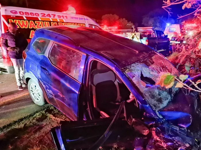 One person died tragically and four others were critically injured in a collision between two vehicles in Port Shepstone on Monday night. One person died and four were seriously injured in a two vehicle collision on the R102 in the Sunwich Port area of Port Shepstone on the KwaZulu-Natal south coast. Picture: Kwazulu Private Ambulance Service.