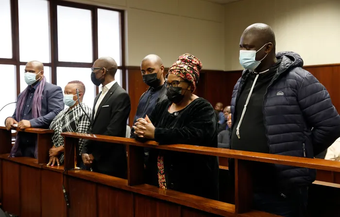 They have all spent a week behind bars awaiting a ruling on their bail application at the Durban Specialised Commercial Crimes Court. The six accused in the dock of the Durban Specialised Commercial Crimes Court last week. Three of them are waiting for a bail decision. Picture: Doctor Ngcobo African News Agency (ANA)