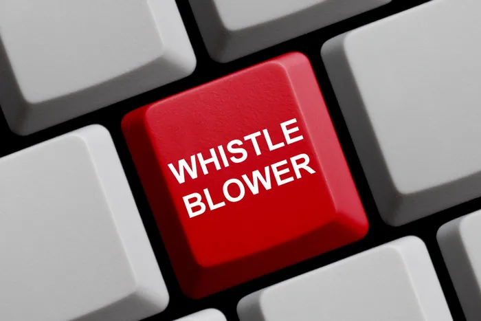 A computer key with the words WHISTLE BLOWER surrounded by blank grey keys. File Picture: Stockfoto