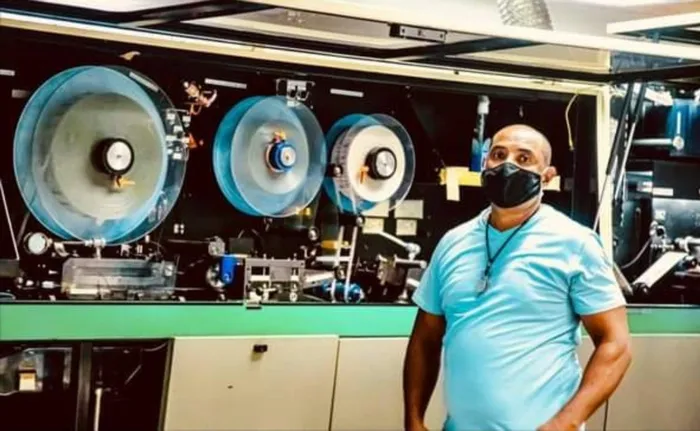 A man stands in front of a machine. The Department of Transport posted this picture of the fixed licensing card machine back in operation. Picture: Department of Transport via Facebook.