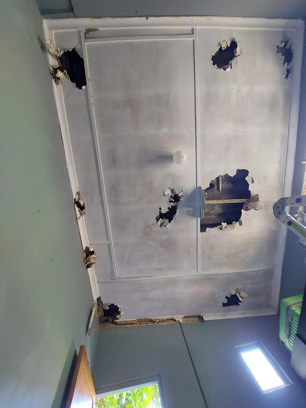 He said it was not an easy roof to work with as there was a small gap between the ceiling board and the asbestos above. No one could climb in and no roof tiles could be removed. The only option was breaking through the ceiling.