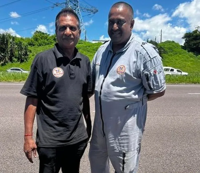 Levi Maistry and Dhevan Govindasamy from security company PT Alarms have been praised by a Durban resident for stopping to assist her when her vehicle had a tyre blow-out on the N2. Picture: Facebook