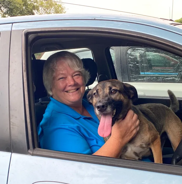 Mary Koen with her new rescue dog Lucy Mary Koen with Lucy, a dog that was rescued from a drain in uMlazi last year. Koen adopted Lucy recently. Picture: Supplied/ SPCA