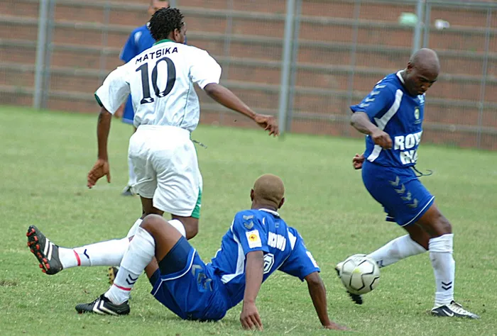 Maritzburg United players (in blue) during a soccer match Maritzburg United players (in blue) during a previous match. The team of choice is currently in a three-way play-off in which the winner will get Premier Soccer League status. File picture