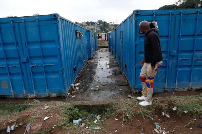 A man walks past two shipping containers. One of the transit camps that people were moved to in 2009 before the 2010 World Cup. The camps were meant to be temporary accommodation before people were moved to permanent homes. Picture: Doctor Ngcobo African News Agency (ANA)