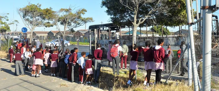 Children dressed in their school uniform looks through a fence Pupils from a Khayelitsha, Cape Town school. The KwaZulu-Natal Department of Education has issued guidelines for vendors selling food to pupils. Picture: PHANDO JIKELO Independent Newspapers