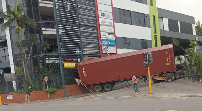 a jackknifed truck. A truck travelling on Kenilworth Road in Overport jackknifed, damaging power cables and caused a power outage in the road and surrounding areas. Picture: Social Media