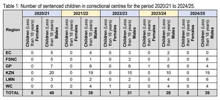 According to data from the Department of Correctional Services (DCS), the national number of sentenced children under 18 has fluctuated, showing a general downward trend before a recent spike.