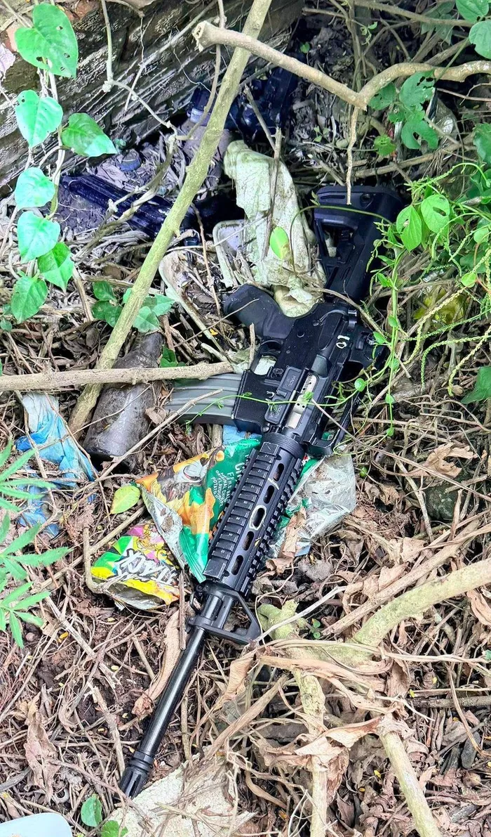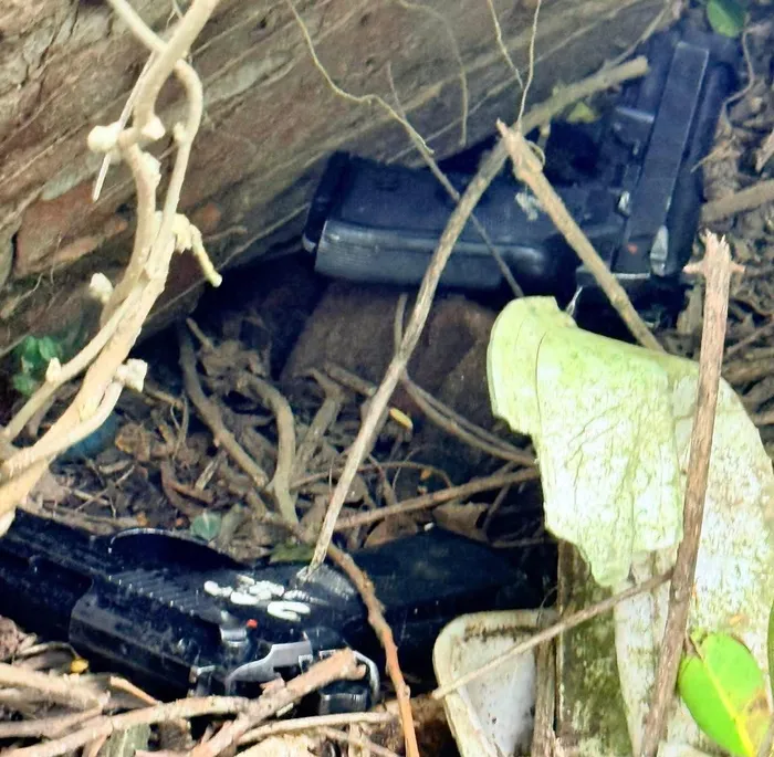 Firearms that are believed to have been discarded by the suspects while they were fleeing the cash heist scene.