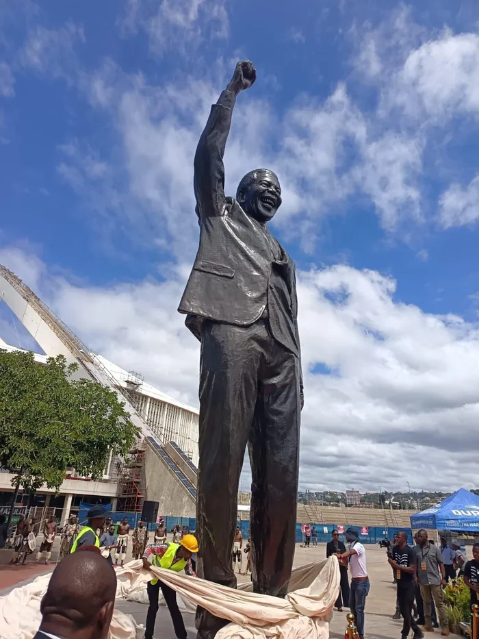 The statue of Nelson Mandela was unveiled at the Moses Mabhida stadium on Tuesday.