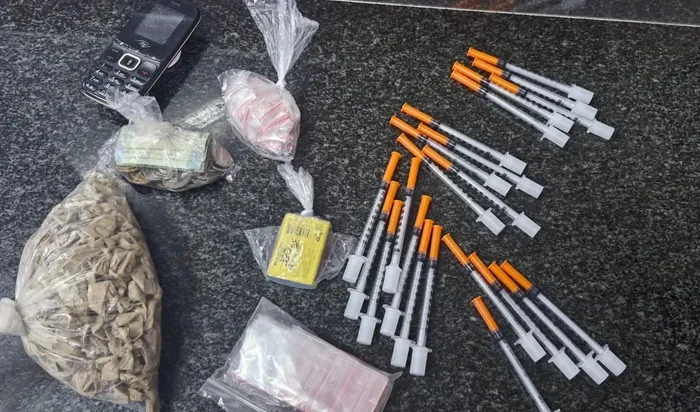 During the search, police found 228 sachets of nyaope, 53 sachets of crystal meth, 34 cocaine rocks wrapped in foil paper, 22 syringes, as well as an undisclosed amount of cash.