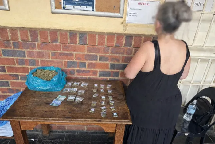 Some of the illegal drugs seized during EMPD operations in Ekurhuleni are displayed on a table, with the face of one of the arrested women blurred to protect her identity, as she had not appeared in court.