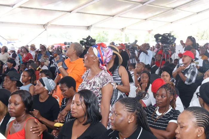 Grieving families attend a memorial service at the Saul Tsotetsi Sports Ground Hall in Sebokeng on Friday to honour the 14 pupils killed in a crash in Vanderbijlpark earlier this week.