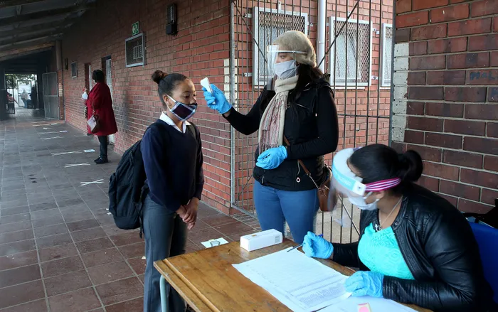 SOUTH AFRICA - Cape Town - 01 June 2020 - Grade 7 students at Nerina Primary school in Bonteheuwel return back to school today after a 2 month long break as a result of Covid-19 and the lockdown. Teachers and students take extra precautions at the school. Picture:Brendan Magaar/African News Agency (ANA)