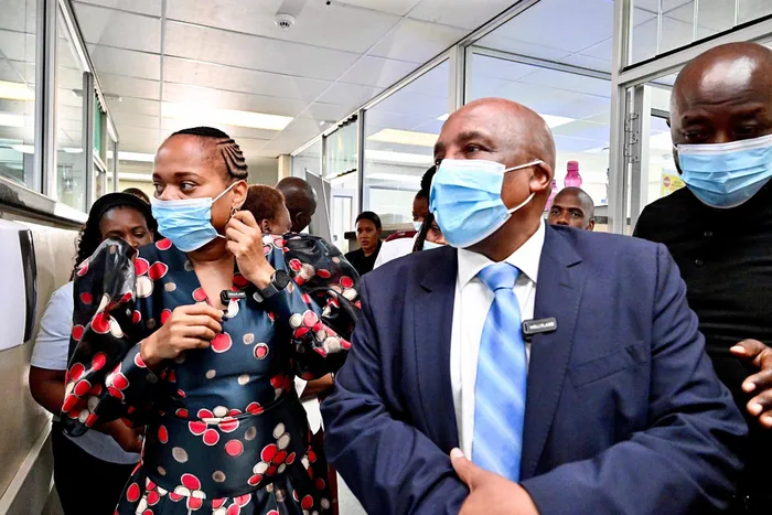 Premier Dr Phophi Ramathuba and Minister of Health Dr Aaron Motsoaledi pictured going to visit the brothers following their groundbreaking surgery