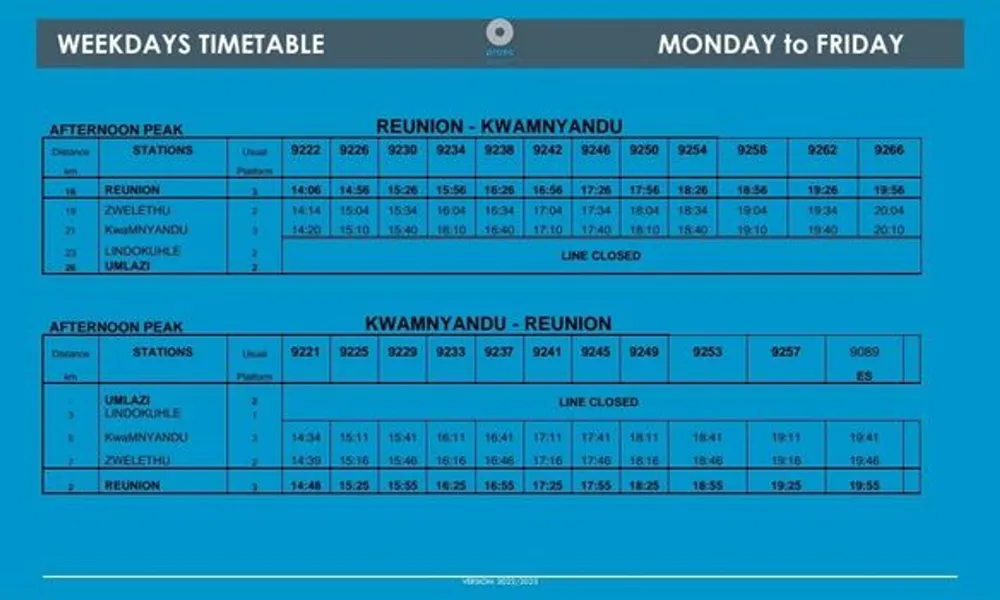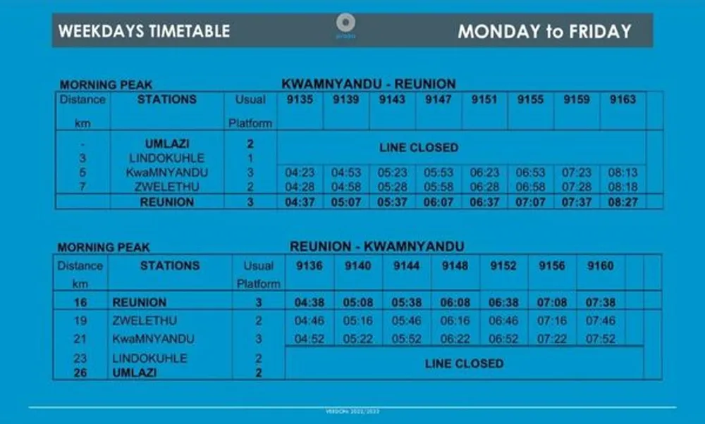 It urged commuters to familiarise themselves with the timetable that will be provided at stations and on the Prasa KZN communication platforms.
