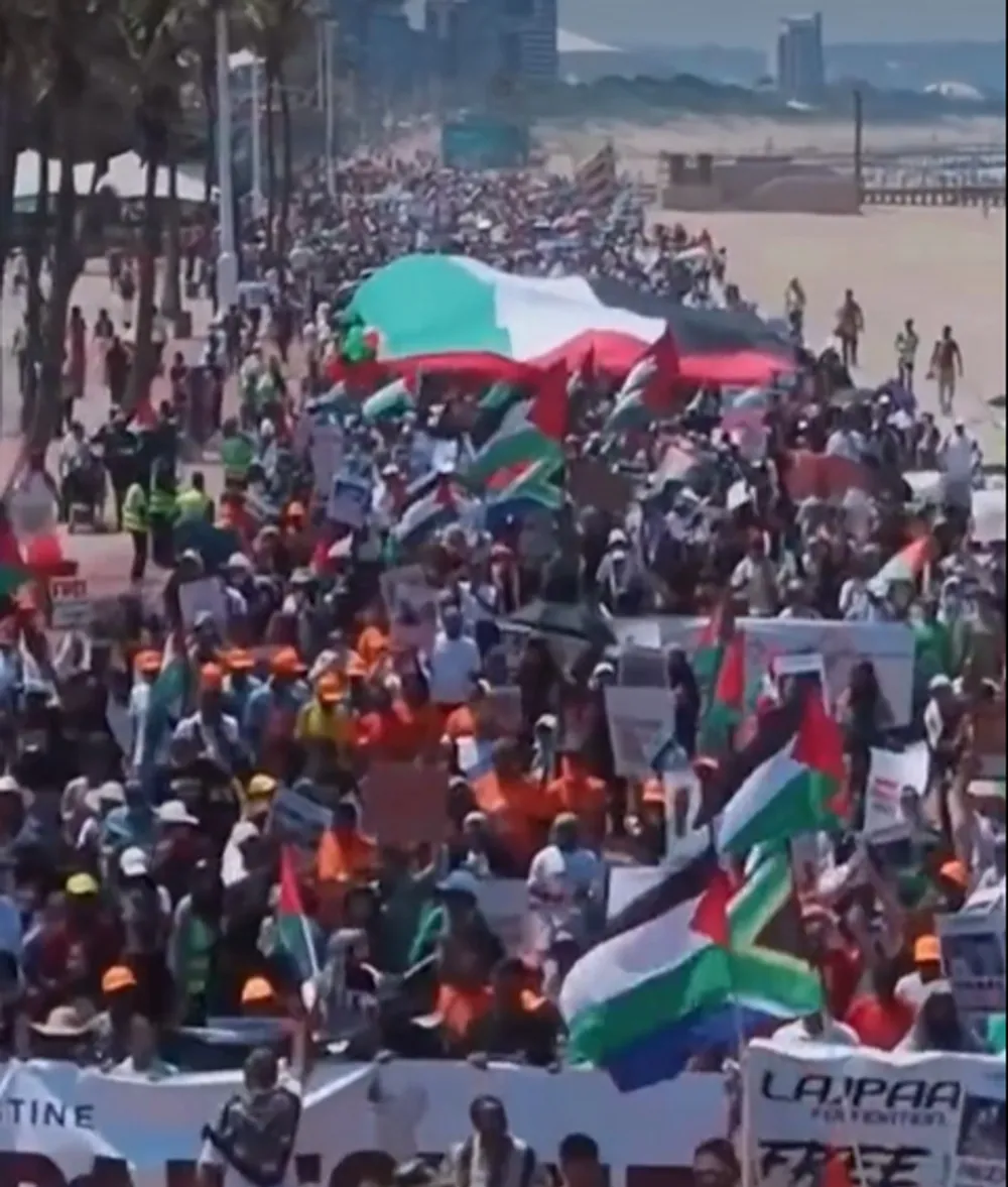 Pro-Palestine supporters from the City of Durban in KwaZulu-Natal took to the beachfront this past weekend, to stand in solidarity with the nation as the conflict between Israel and Palestine continues.