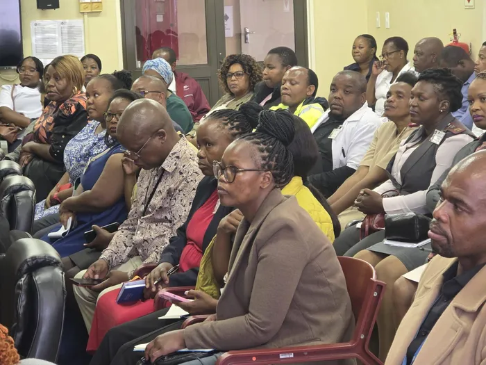 KZN Health MEC Nomagugu Simelane listens to staff concerns at St. Apollinaris Hospital.