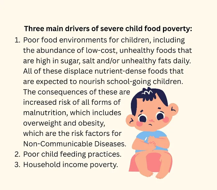 “This is particularly alarming as our data tells us that children in severe child food poverty face 50% increased odds of wasting, which is a life-threatening form of malnutrition,” Tshitaudzi said.