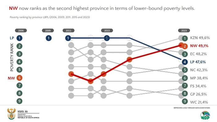 The North West now ranks as the second-highest province in terms of the lower-bound poverty levels.