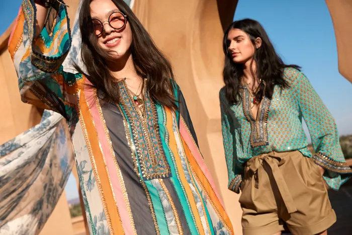 Finely crafted accessories and shoes accentuate the full looks. A key highlight of this collection will be Indian textile and print traditions brought to life by the Sabyasachi Art Foundation with meticulously crafted vintage block prints and multicolour silhouettes.