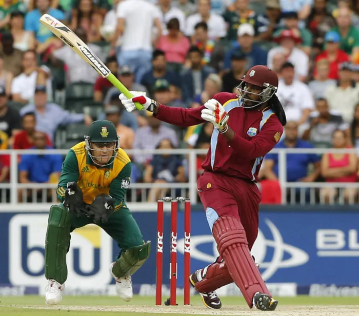 Chris Gayle (R) of the West Indies plays a Aaron Phangiso delivery during their second T20 series against South Africa at Wanderers Stadium in Johannesburg January 11, 2015. REUTERS/Siphiwe Sibeko (SOUTH AFRICA - Tags: SPORT CRICKET) Chris Gayle (R) of the West Indies plays a Aaron Phangiso delivery during their second T20 series against South Africa at Wanderers Stadium in Johannesburg January 11, 2015. REUTERS/Siphiwe Sibeko (SOUTH AFRICA - Tags: SPORT CRICKET)