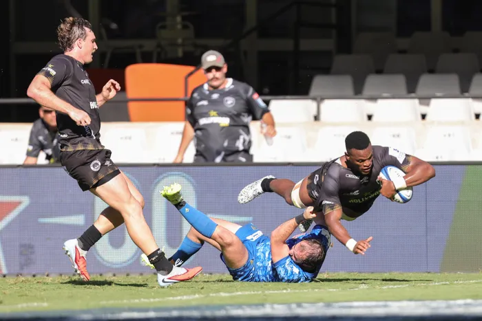 Phendulani Buthelezi of the Sharks scored a try against ASM Clermont at Kings Park Stadium in their Champions Cup clash on Saturday at Kings Park in Durban. Photo: BackpagePix
