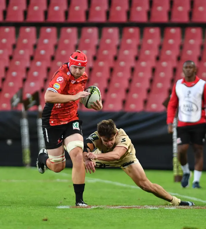 Francke Horn continues to be the heartbeat of the Lions' pack. Whether it’s dominant carries or tireless defensive shifts, the No. 8 is proving that he belongs on the biggest stage. Photo: Backpagepix
