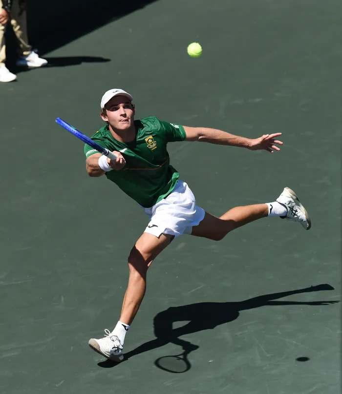 After trailing 5-2 in the deciding rubber, Alec Beckley fought back to secure a 3-2 victory for South Africa over Montenegro on Sunday in the Davis Cup. Photo: Backpagepix